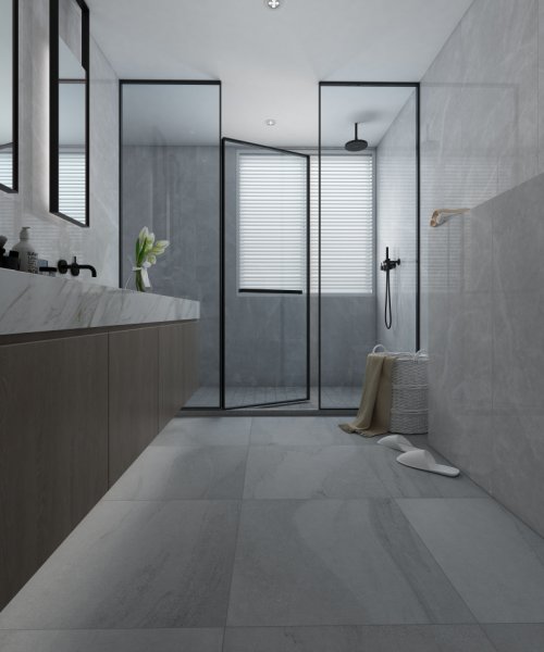 家居環(huán)境的幾大區(qū)域:客廳、臥室、廚房、浴室的面積各不相同,在瓷磚的選擇上也需要具體問題具體分析。客廳與臥室空間相對較大,建議選擇600*1200或是900*1800等大規(guī)格的瓷磚。而廚房與廁所這類空間較小的環(huán)境,建議選擇300×400mm、300×300mm、250×330mm這3種規(guī)格。箭牌瓷磚A視界系列為600×1200mm長方形瓷磚,紋理延展性很強,大面積鋪貼可以打造大氣完整且同意的風格。同時,還可根據(jù)消費者需求任意切割,亦或是混搭鋪貼,營造更加多元的居室風格。