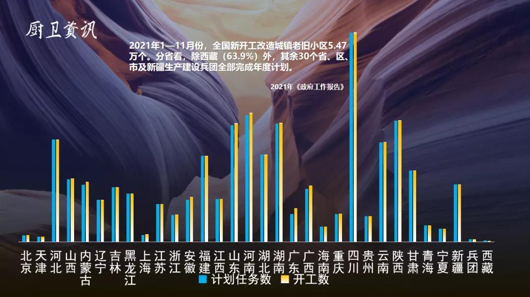 可以看到,城鄉老舊小區的改造是一項龐大的工程。據國家統計局的數據顯示,2021年1~10月份的老舊城區改造小區數量是5.47萬個,而且這個數字還在不斷增長。