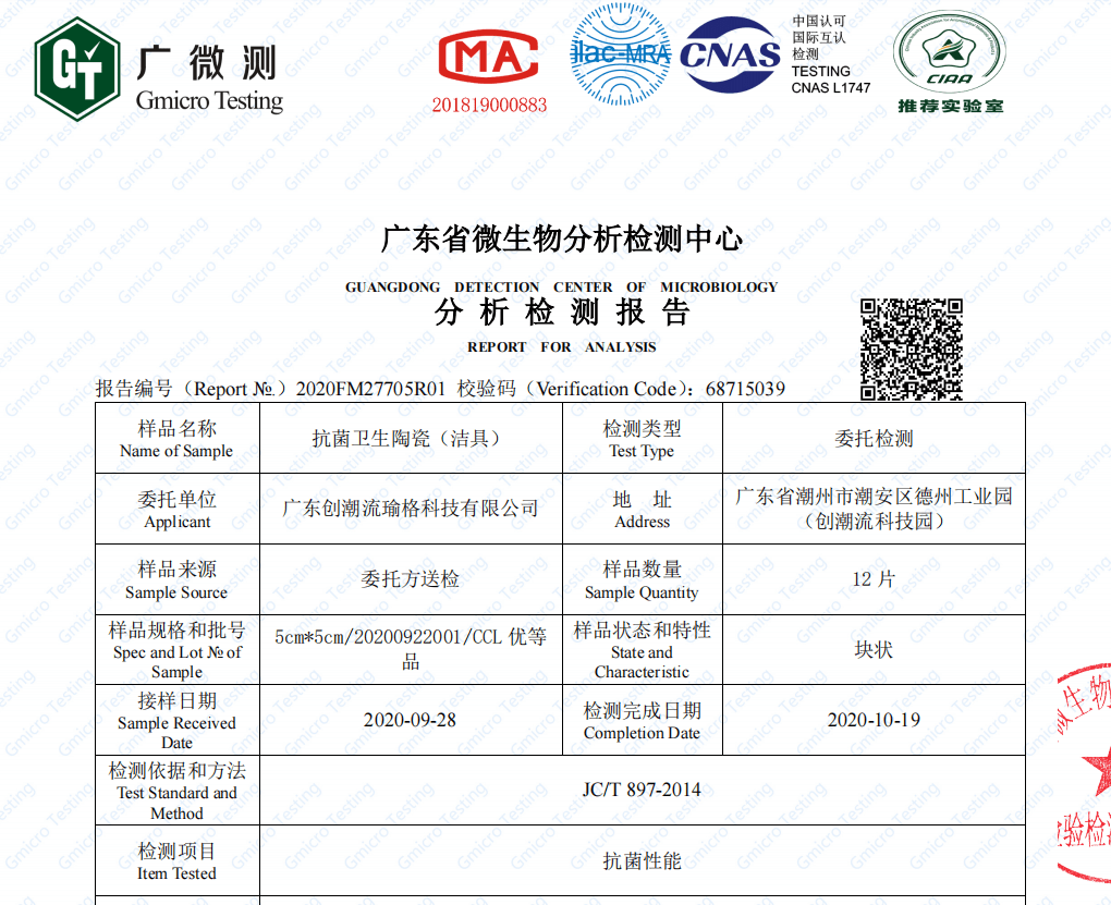 此外,創(chuàng)潮流聚焦抗菌衛(wèi)浴,打造行業(yè)專業(yè)化抗菌領(lǐng)導(dǎo)者形象,搶占健康衛(wèi)浴新賽道??咕闫髟谔沾捎粤现刑砑訌?fù)合納米抗菌材料,通過(guò)高溫?zé)埔约八拇呋δ埽行У囊种撇鐨⒓?xì)菌,從而達(dá)到抗菌易潔、除霉防臭的效果;抗菌衛(wèi)生陶瓷經(jīng)權(quán)威機(jī)構(gòu)檢測(cè),對(duì)大腸桿菌、金黃色葡萄球菌抗菌率高達(dá)95%以上,并實(shí)現(xiàn)馬桶長(zhǎng)效抗菌。2021年,創(chuàng)潮流抗菌產(chǎn)品榮獲中國(guó)廚衛(wèi)榜“抗菌衛(wèi)浴產(chǎn)品金獎(jiǎng)”。