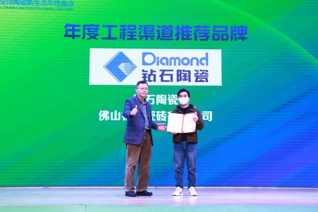 鉆石陶瓷獲得了“年度工程渠道推薦品牌”的稱號;