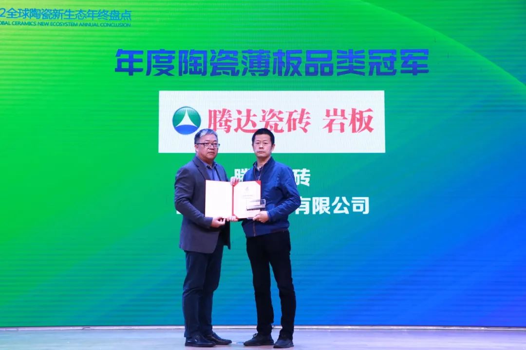 騰達瓷磚獲得了“年度陶瓷薄板品類冠軍”的稱號;