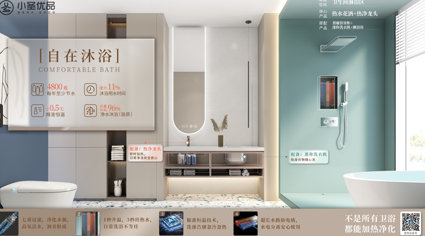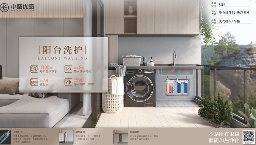 正是在這一背景下,小圣優(yōu)品衛(wèi)浴聚焦年輕消費(fèi)市場(chǎng),以高顏值、科技智能、年輕化定制、舒適健康、人文關(guān)懷的品牌形象橫空出世。劉祥透露,經(jīng)過(guò)疫情三年,年輕消費(fèi)者更加注重健康用水。劉祥表示,小圣優(yōu)品將家庭用水空間劃分為廚房、衛(wèi)生間、陽(yáng)臺(tái)三大空間,廚房洗切、日常盥洗、自在沐浴、舒適如廁、陽(yáng)臺(tái)洗護(hù)五大場(chǎng)景。劉祥指出,當(dāng)前大部分家庭的衛(wèi)生間、廚房、陽(yáng)臺(tái)并沒(méi)有熱水系統(tǒng),嬰兒、女士等衣服清洗并不便捷,小圣優(yōu)品衛(wèi)浴針對(duì)各個(gè)空間、場(chǎng)景用水“痛點(diǎn)”提供健康、智能化的歐洲末端制熱系統(tǒng)解決方案,從水質(zhì)、品效、節(jié)水、接電等方面出發(fā),幫助家庭用水的三大空間五大場(chǎng)景24小時(shí)無(wú)限量恒溫?zé)崴嬲龑?shí)現(xiàn)整家熱水,全衛(wèi)定制。