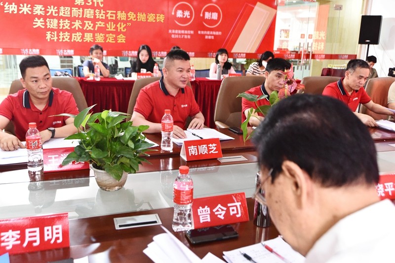 2023年4月17日,中國輕工業聯合會在廣東省佛山市組織并主持召開了由廣東大角鹿新材料有限公司 、佛山市陶瓷行業協會完成的“納米柔光超耐磨鉆石釉免拋瓷磚關鍵技術及產業化”項目技術鑒定會。會上,鑒定委員會專家一致認為:“納米柔光超耐磨鉆石釉免拋瓷磚關鍵技術及產業化”項目整體技術達到國際領先水平。