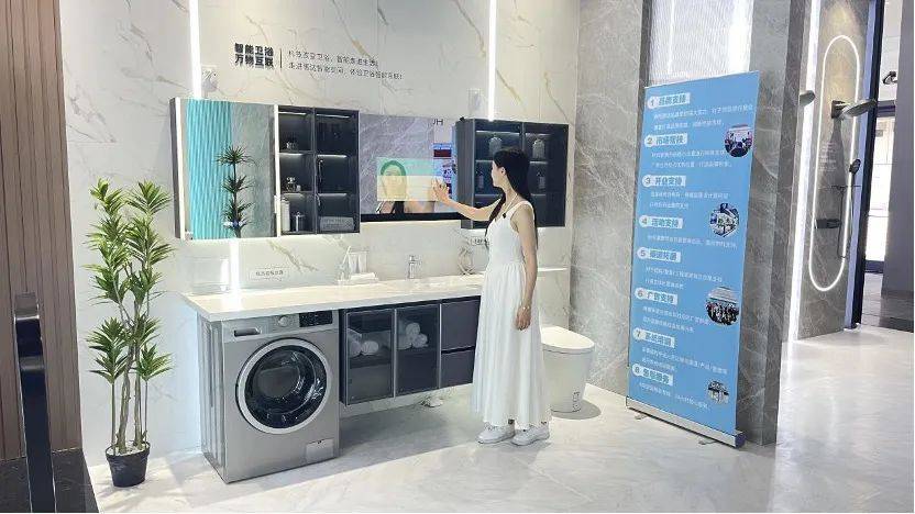 走進(jìn)內(nèi)部,是惠達(dá)帶來的獨(dú)門絕技——高端定制的智能衛(wèi)浴空間,它展示了當(dāng)下最新智能技術(shù)下的衛(wèi)浴生活景象。該空間內(nèi)可實(shí)現(xiàn)APP控制馬桶、水龍頭,觸摸和人體感應(yīng)控制柜子燈光。可以說,惠達(dá)衛(wèi)浴展出的智能衛(wèi)浴空間高度融合了互聯(lián)網(wǎng)、物聯(lián)網(wǎng)等技術(shù),實(shí)現(xiàn)了智能跨界破圈融合,讓全屋智能更具象化,現(xiàn)場觀眾直呼“這衛(wèi)生間太聰明了”。