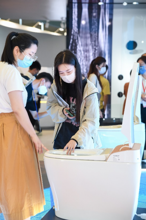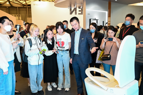 自推出以來,摩恩的智能座便器系列向來備受消費者青睞,此次,可監測體脂健康的摩恩智能健康監測座便器系列首次現身KBC展臺,該產品搭載摩恩自研算法,通過日常如廁輕松測得身體數據,用戶點開手機App即可精準了解家人健康狀況,及時做好全家人的健康管理。而新月系列智能座便器在摩恩的腳踢控制,揮手翻蓋這些在推廣的功能基礎上,還能通過100多個語音控制詞條全程語音控制無需手部接觸;且每次使用離座后,馬桶內壁會噴灑電解水到盆腔內壁進行除菌。
