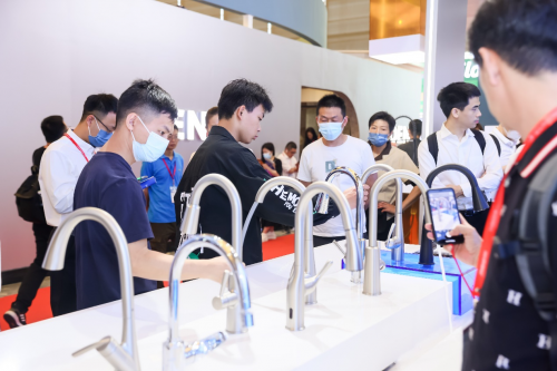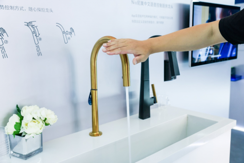 在智聯水產品區域(MOEN Smart Water Network),摩恩Apphia智能手勢控制廚房龍頭備受關注。功能方面,該款產品可通過手勢指令精準控制龍頭開關水、水量及水溫,并實現自定義的不同場景用水設定;外觀方面,則采用去把手設計,簡約典雅的外觀造型,與感應黑科技相映成輝。