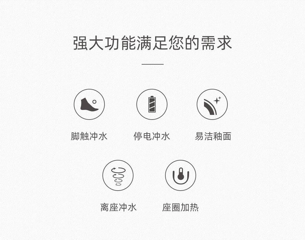 如果說座圈加熱解決了如廁冰冷和細菌傳播,惠達HDE2002T輕智能馬桶的這些獨特功能更能提升如廁的整體感受。零壓沖水,無論多高樓層,都能輕松沖廁;停電沖水,遠離停電不能沖廁的尷尬;腳觸沖水,解放雙手,讓如廁更簡單衛生;離座沖水,人走沖水,無需主動操作;夜間照明氛圍燈,如廁也有儀式感。