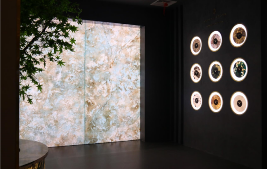 歐若拉精工奢石柳州店將色彩、材質的藝術搭配運用到生活中,豐富的樣式與產品風格,吸引著過往行人的注意,每一個空間都有著不同的主題和色彩基調,持續滿足消費者和設計師的需求,外立面時尚具有張力,整個展廳采用中性色調演繹獨屬于柳州的奢適生活,進門處的超薄奢石背景墻,上演著燈光與奢石的完美結合,勾勒出生活的美意,感受隨著空間轉換而改變,體驗藝術成為生活的一部分。
