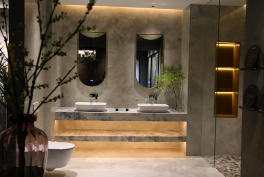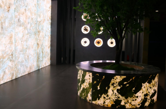 歐若拉精工奢石柳州店,闡述城市中的藝術空間。店態集合各種生活功能空間,整體以高定定調,利用精工奢石打造空間,以生命之樹溯源自然之美,奢石發光墻、奢石家具、奢石唱片、圓弧展示等厚度到規格延伸至藝術應用,從客廳、餐廚、衛浴等場景搭配完美適配人們對于生活的不同需求和理解,助力他們找到專屬自己的藝術生活空間。
