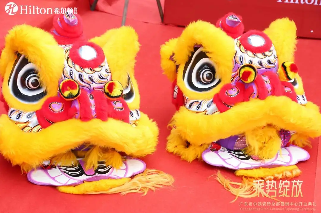 祥獅蘇醒,昂首挺胸,目光炯炯有神,展現出勃勃生機,為希爾頓瓷磚帶來無盡財源與好運。在各位領導嘉賓的見證下,金獅點睛,更顯威猛與神采,為希爾頓瓷磚的美好未來注入新的活力與希望。