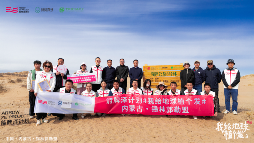 4月18日,箭牌家居「箭牌澤計劃」與螞蟻森林、中國綠化基金會共同舉行箭牌公益林揭牌儀式暨植樹活動,以善行義舉深耕中國綠化公益領域,開啟了新一輪公益實踐,為建設生態安全之墻作出積極貢獻。螞蟻森林可持續綠色公益部高級專家潘曉峰、中國綠化基金會項目二處處長黃紅、內蒙古自治區、錫林郭勒盟的林草部門相關領導、箭牌衛浴經銷商代表以及箭牌家居集團品牌總監徐健等嘉賓出席揭牌儀式,共同見證箭牌公益林3號林公益項目的再次延續,以“我給地球植個發”為契機,共同守護綠水青山。