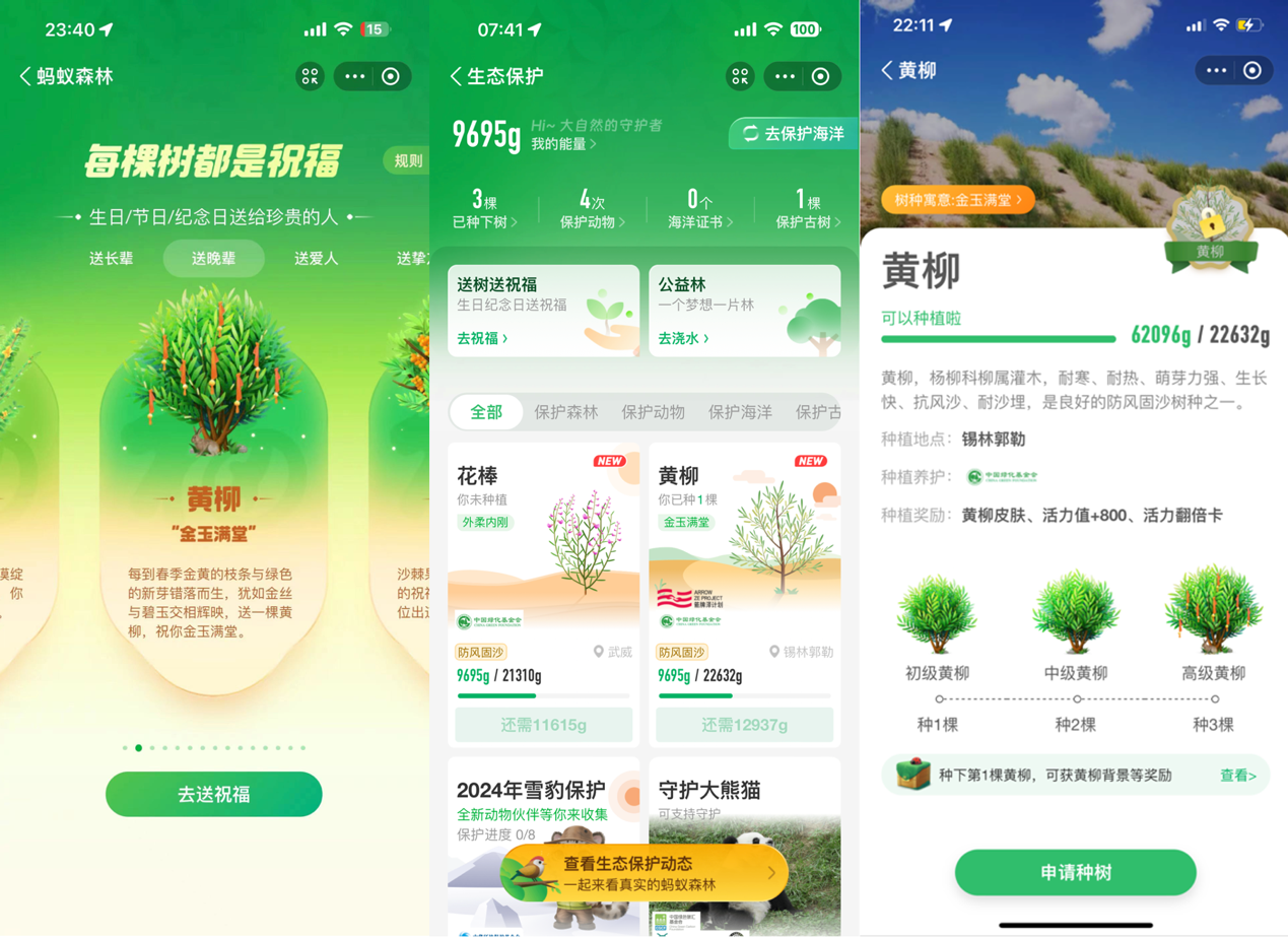 登陸螞蟻森林即可申領黃柳,一起守護大自然