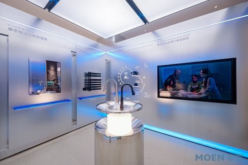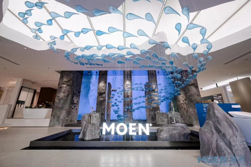 步入體驗中心,首先映入眼簾的是極具設計感的“水體驗”空間,摩恩從“與自然融合”的核心設計理念出發,通過創新的裝置藝術結合摩恩的創新產品,將視覺、聽覺、嗅覺相融合, 為消費者帶來一場“摩恩讓水更美好”的沉浸式感官盛宴,使摩恩“慧享水之美”的品牌理念煥發鮮活生命力。
