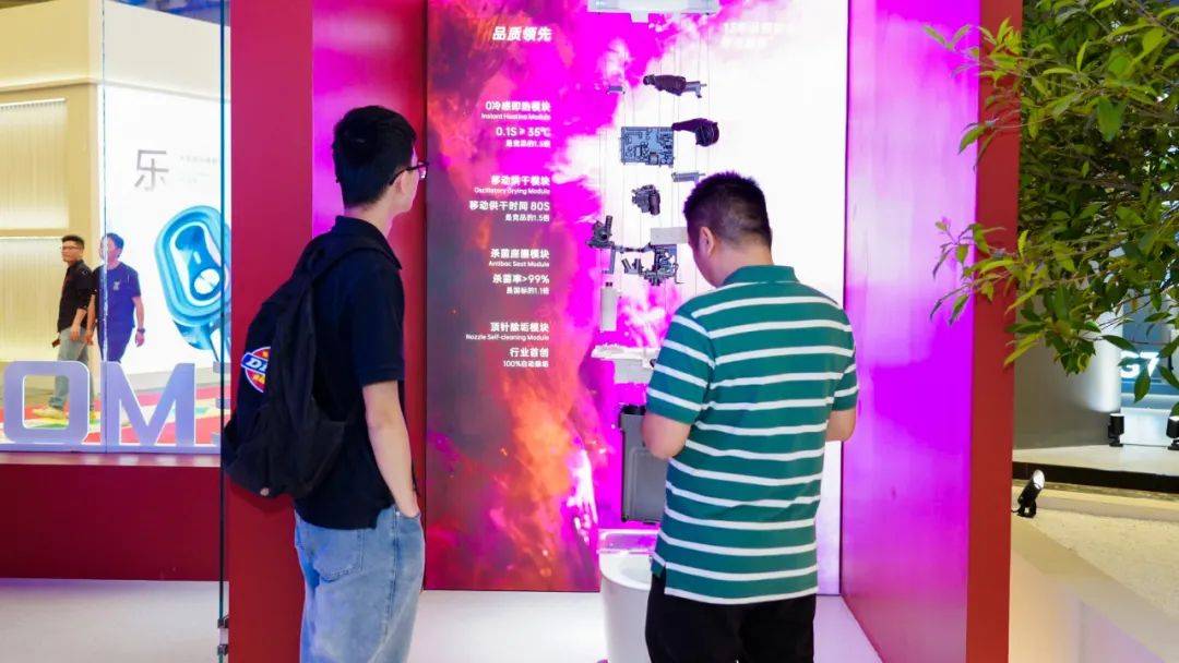 本次展會重磅推出M40智能馬桶。洞察群體生活痛點,為淺眠、隱疾等用戶帶來"3重養心科技"。柔和的氛圍尾燈充滿松弛感,保持視覺美感設計的同時,在靜音技術以及智能功能上也追求極致。
