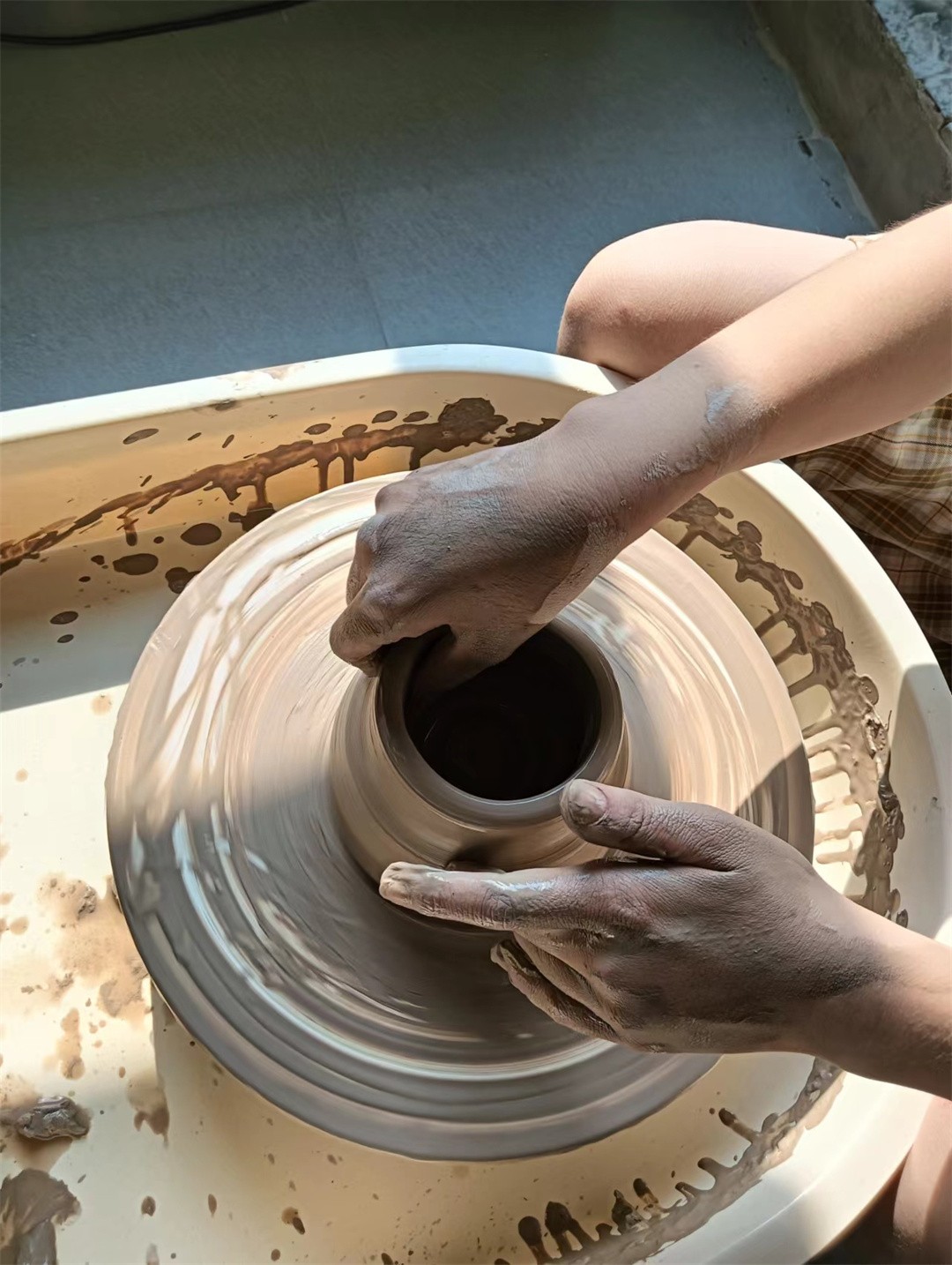 玩泥是孩子的天性,對(duì)于童年,做陶藝玩泥巴當(dāng)屬最愜意的了。在這個(gè)充滿儀式感的時(shí)刻,6月30日,在學(xué)校的四樓陶藝教室里彌漫著特殊的氛圍。陶藝社團(tuán)的師生們齊聚一堂,為這批即將離校的畢業(yè)生們上最后一節(jié)“玩泥課”。在老師的精心安排下,同學(xué)們從泥土到作品的整個(gè)過程,一團(tuán)團(tuán)泥土在同學(xué)們的手中變換著形態(tài),他們玩得不亦樂乎,盡情享受著陶藝制作的樂趣和成就感。更重要的是,他們?cè)谥谱鬟^程中感受到了傳統(tǒng)文化和藝術(shù)的無窮魅力。