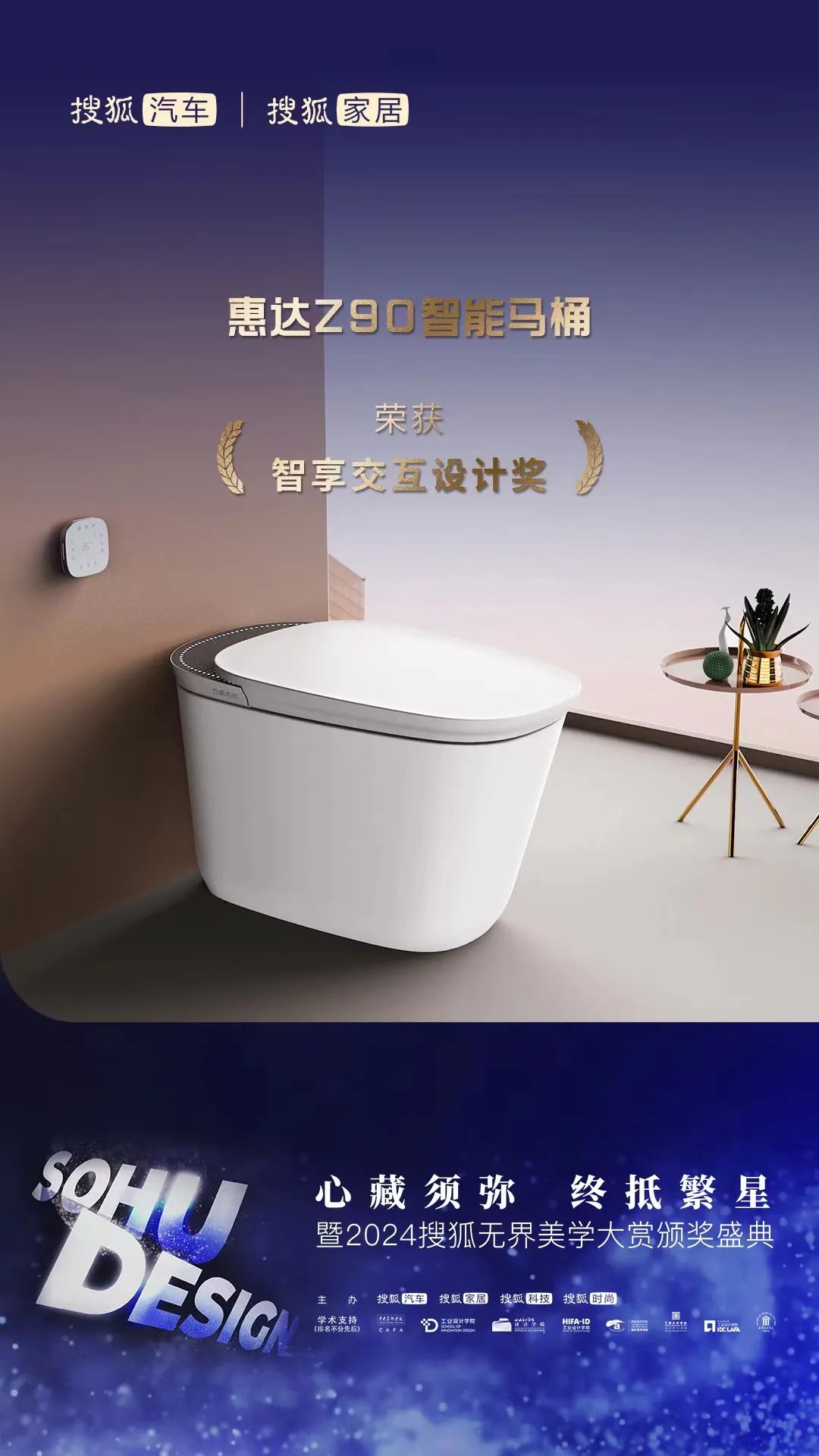 健康衛浴定制專家惠達衛浴作為中國家居行業的品牌企業代表參與評選,惠達Z90智能馬桶最終脫穎而出并榮獲“智享交互設計獎”。頒獎盛典現場,惠達衛浴與保時捷、奧迪、蔚來、名爵等國際知名品牌同臺領獎,彰顯了其產品設計的引領作用以及在衛浴行業的領先地位。
