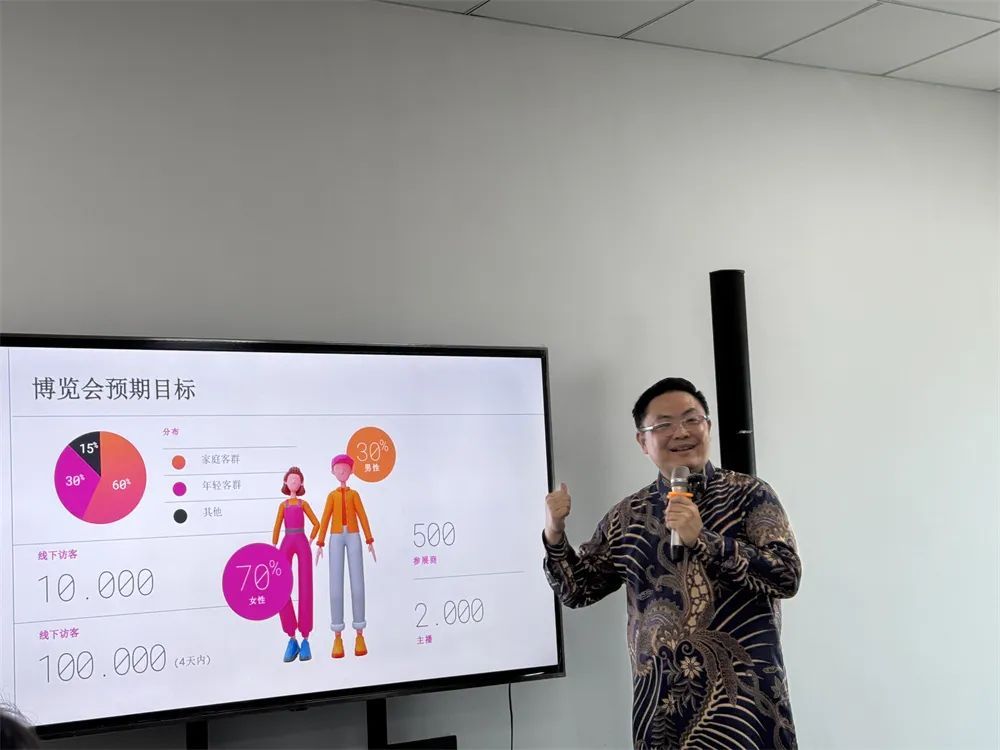 Bliteexpo聯合創始人陳文坤為與會者解讀了目前印尼市場的現狀與分析,也為企業主們提供了一個全新的商業機遇。在泗水博覽會活動方案的詳細闡述中,陳文坤強調了Pasar Turi這一著名商場的轉型升級,以及Blite博覽會如何成為引領市場發展的新標桿。