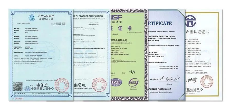 航標衛浴作為福建省技術型企業,全面執行國家水效標準認證,通過ISO14001環境管理體系認證、中國節水產品認證、韓國KS認證、歐洲CE認證、北美cUPC 單雙排水認證、EPA認證等,產品節水性能達到并超過國家標準,達到ASME標準及歐洲標準。