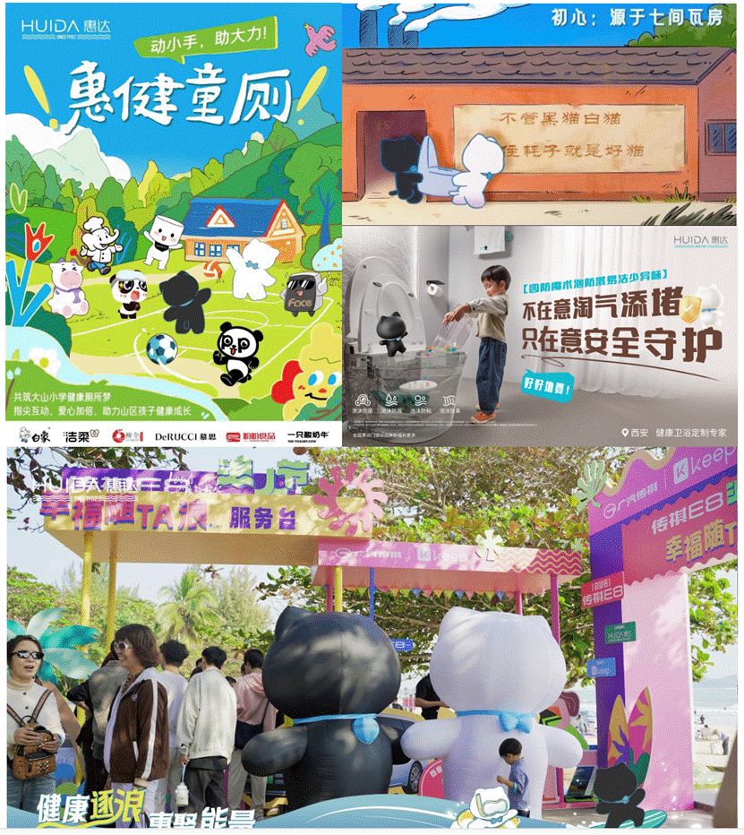 惠惠達達IP“黑白貓”形象設計來源于一句名言,“不管黑貓白貓,能捉老鼠的就是好貓。”2024年3月,伴隨著一支可愛的動畫,惠惠達達正式“出道”,并在接下來的一年里作為品牌“代言人”瘋狂圈粉:5月,惠惠達達在上海廚衛展嶄露頭角,帶領大家共同回溯品牌發展歷程,凸顯“智凈健康生活”主題,并定位為“健康衛浴定制專家”;8月,惠惠達達表情包正式上線,不論是元氣滿滿,亦或是溫暖治愈,都能完美適配多樣社交場景,暖心陪伴用戶的工作與生活,與此同時,惠惠達達還與惠達衛浴總裁王佳及航天工程專家一起,參與品牌42周年直播,成為直播內容的一大亮點;9月,惠惠達達攜手招商銀行,召喚“健康搭子”,共同參與健步行活動,傳遞惠達衛浴健康生活理念,惠惠達達的萌趣可愛也吸引了現場市民紛紛駐足打卡;10月,惠惠達達攜手惠基金,參與“惠”建童廁項目,看見被忽視的校園廁所衛生問題,助力偏遠地區校園廁所全面升級,給大山里的孩子們送去健康;11月,惠惠達達參演42周年TVC《讓在意看得見》,講述三代人家庭與女性群體的故事,TVC中,惠惠達達貫穿始終,成為品牌化身,默默陪伴、守護每一位用戶的生活,象征著品牌對每一位消費者最長情的告白;12月,惠惠達達帶團出游,聯合Keep舉辦沙灘狂歡派對,在海邊為《100個女孩的后臺》欄目畫上完美的句號,健康生活不止一面,女孩們在沙灘上肆意揮灑,惠惠達達則化身搭子,全程陪伴,一起奔赴美好未來······回顧2024,惠惠達達度過了充實的一年,成為了品牌文化的生動載體,同時也成為了消費者心中關于品牌的獨特記憶符號。