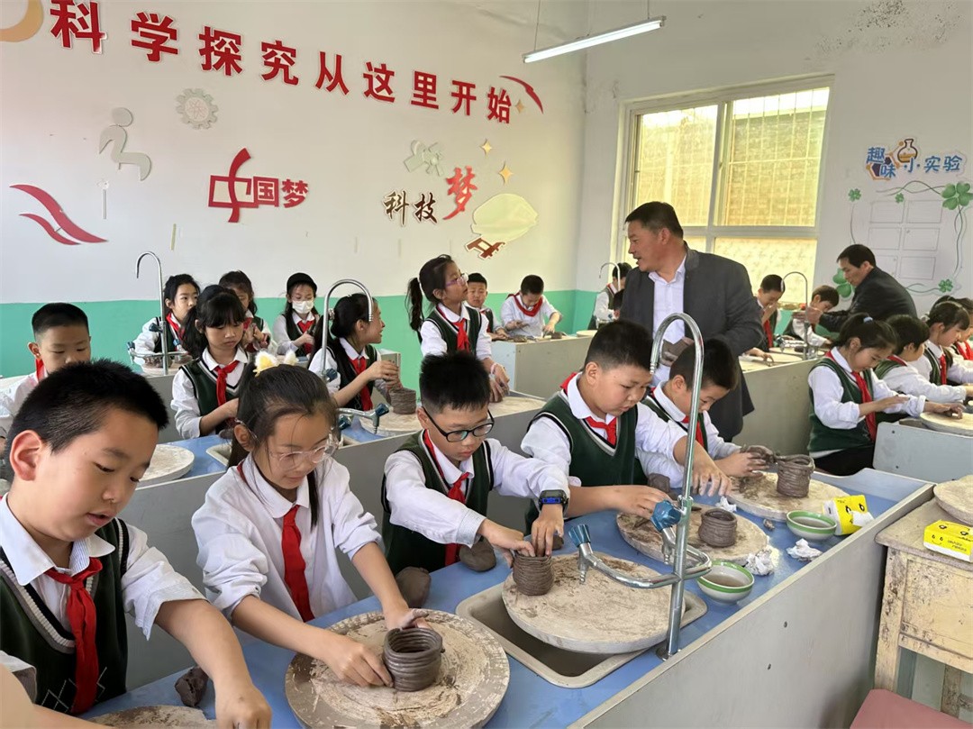 4月19日,石家莊市盛世長安小學教師計春麗、王新會,帶領學生前往井陘礦區(qū)古村落藝術村,開展研學活動。走進藝術村,古宅錯落,色彩繽紛,溪水環(huán)繞,同學們參觀了藝術家院落,訪問了多位國家級藝術家駐地工作室、欣賞了各種藝術作品,參觀了正豐左岸美術館展岀的藝術精品展,具有濃厚的紅色文化底蘊,藝術村保留了古老村落的韻未,同時融入了現代藝術的靈魂,形成了獨特的藝術氛圍。在馮家溝陶藝館,在李耀會老師的熱情講解下,同學們了解非物質文化遺產馮家溝陶瓷技藝的制作工藝、歷史背景以及作品之美,同學們還親自動手操作體驗勞動創(chuàng)造美的過程,捏一捏、揉一揉、搓一搓、粘一粘,在老師的指導下,同學們將手中的泥土制成各式各樣的造型,沉浸式體驗了古老傳統手工陶藝的成型工藝。陶藝,源于陶土,融于水火,塑于人工,一件陶藝品,由泥土,經火淬煉至最終成于器,需經采石制泥、成型、配釉,啄器燒制等工序,期間流程繁瑣,細節(jié)頗多,更有諸多偶因素,因此器之所成極其不易,從陶土到成品、需要經過幾十道工序,每一工序都凝聚著匠人的精神與智慧。通過實踐,不僅讓同學們感受到了“陶瓷藝術”非物質文化遺產的精妙,更讓同學們懂得了堅持與專注的意義,同時也增強了同學們的自信心和自我價值感。